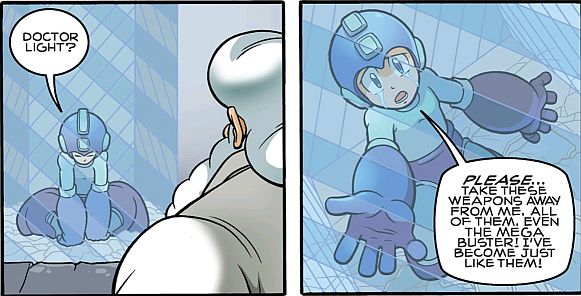 Aber nicht nur der Zeichenstil ist wichtig! Story technisch bekommen wir hier nämlich auch was geboten. Ob es Proto Mans Geschichte ist, die von Trauma und Verrat geprägt wurde oder Mega Mans Einstellung zum Kampf selbst und der Zwiespalt der daraus ensteht! Das ist dann öfter mal ne sehr emotionale Geschichte und auch sonst scheut sich Archie Comics nicht, den Leser hier und da mal bewusst zu schockieren oder zum Nachdenken zu bewegen. Denn trotz all dieser Macht, bleibt unser Held im Geiste immernoch ein kleiner Junge, der oftmals garnicht weiss mit etwas umzugehen. Und genau dieser Prozess des Lernens, mit Hochmut, Demut, Fall und allem was sonst noch dazu gehört, ist eine der größten Stärken dieser Comic Reihe!