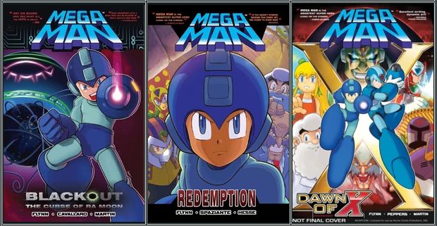 - Arc 9: Dawn of X: (Heft37-40) Der Fokus liegt hier auf dem Mega Man der Zukunft (Mega Man X). Und während unser Mega Man mit Pharao Man gegen Wily Walker kämpft, erleben wir die Zukunftshelden X, Zero und sogar Vile, ebenfalls in einem Kampf gegen diesen abtrünnigen Gegner, aber 100 Jahre später!