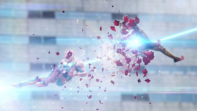 Die Lösung für Ayakas Rettung kommt von Daiji, was er zuvor durch ein Gespräch mit George erfahren hatte. Ein sogenannter „Rider Kick“ kann die zwei wieder trennen. Und nach einer wilden, CGI lastigen aber durchaus unterhaltsamen Jagt durch die Stadt, gelingt Revice dies auch. Und der Rider Kick sieht wieder richtig klasse aus. Die Art da soweit ran zu zoomen und die Befreiung in Zeitlupe ablaufen zu lassen wirkt unglaublich gut. Und während Revi seine fallende erste Liebe auffängt, erledigt Vice den übrig gebliebenen Deadman und legt eine eher unsanfte Landung hin.