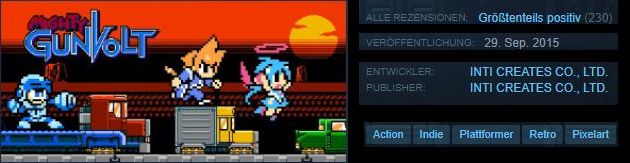 2015 erschien ein kleines Spiel namens „Mighty Gunvolt“. Dieses war für Kickstarter Unterstützter erstmal Gratis und für den Rest der Welt, für ungefähr 5$ zu downloaden. Ich hatte Glück auf Steam und zahlte nur 0,99c, dank eines Angebots.