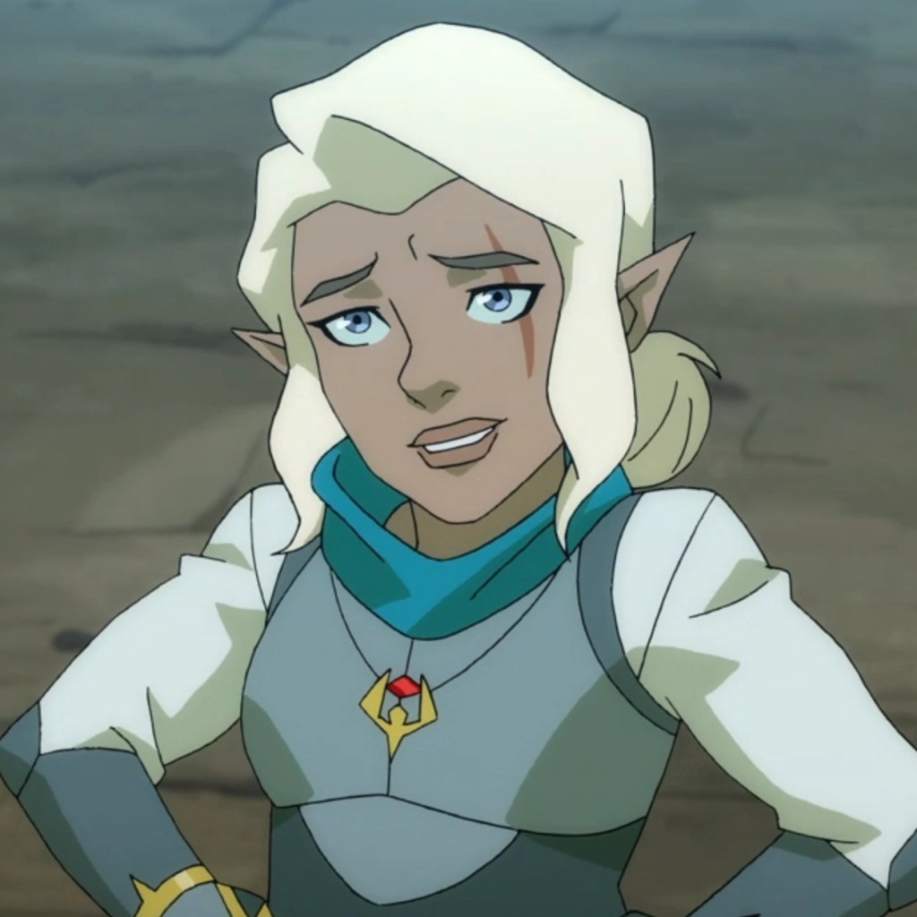 Die Druidin Keyleth ist eine Halbelfe und vom Stamm der Ashari. Sie befindet sich eigentlich auf ihrer Aramenté, einer Art Erwachsen-werden-Reise, an derem Ende sie zur Anführerin ihres Stammes werden soll.
